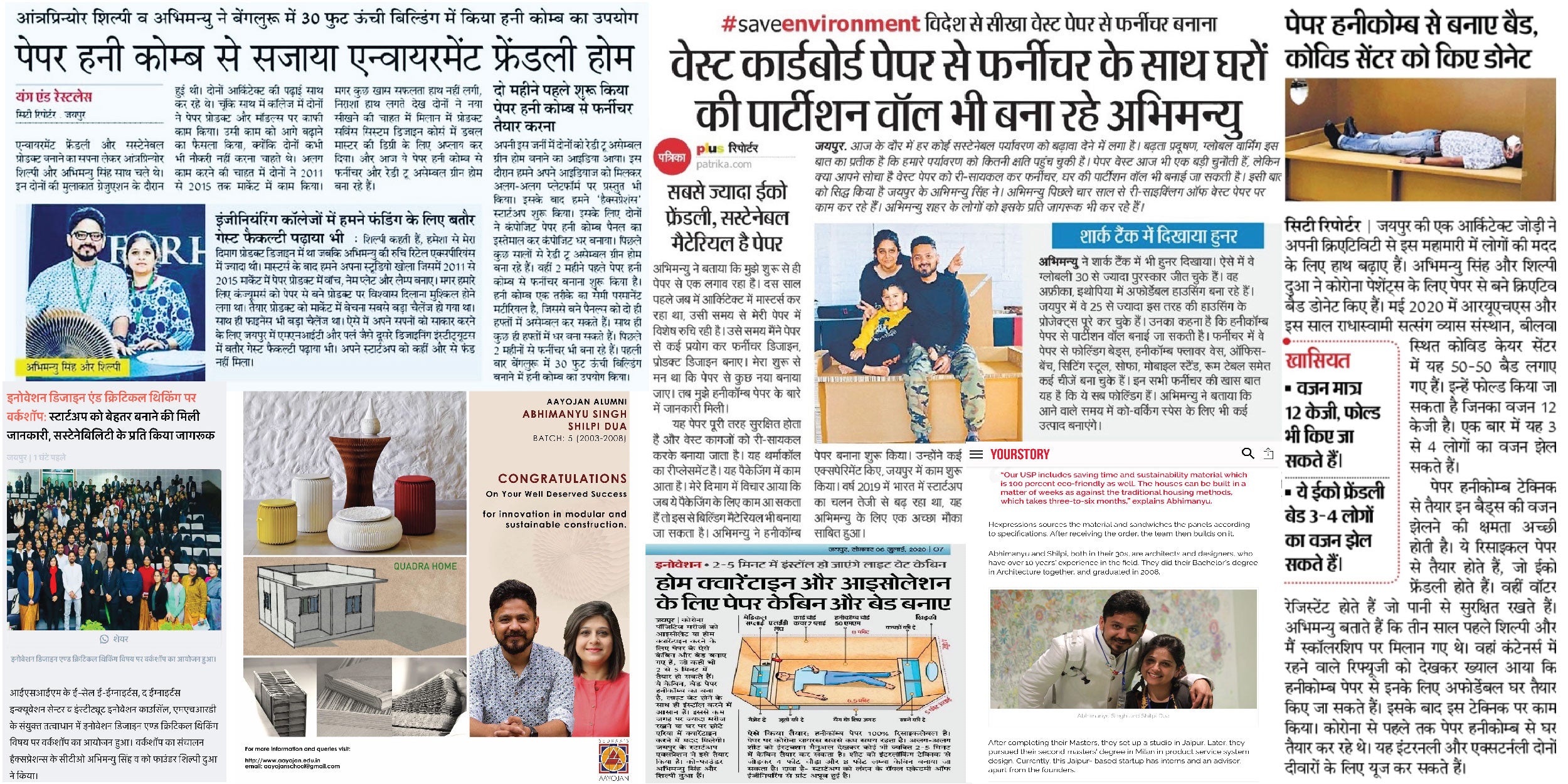 Abhimanyu Singh and Shilpi Dua, the talented architect duo, have been utilizing the honeycomb technique for over ten years to create stunning partition walls, flatpack furniture, and other interior design applications. "Flhexible", which features an array of flatpack and collapsible furniture and desk accessories made from the recycled paper honeycomb. Their philosophy is rooted in functional art, with sustainability at the forefront. If you're looking for eco-friendly and stylish interior design solutions.